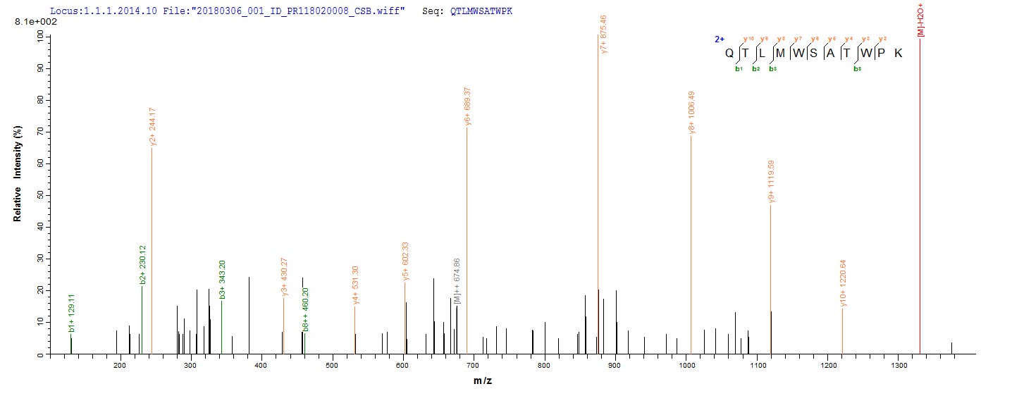 Based on the SEQUEST from database of E.coli host and target protein, the LC-MS/MS Analysis result of CSB-EP006630HU could indicate that this peptide derived from E.coli-expressed Homo sapiens (Human) DDX5.
