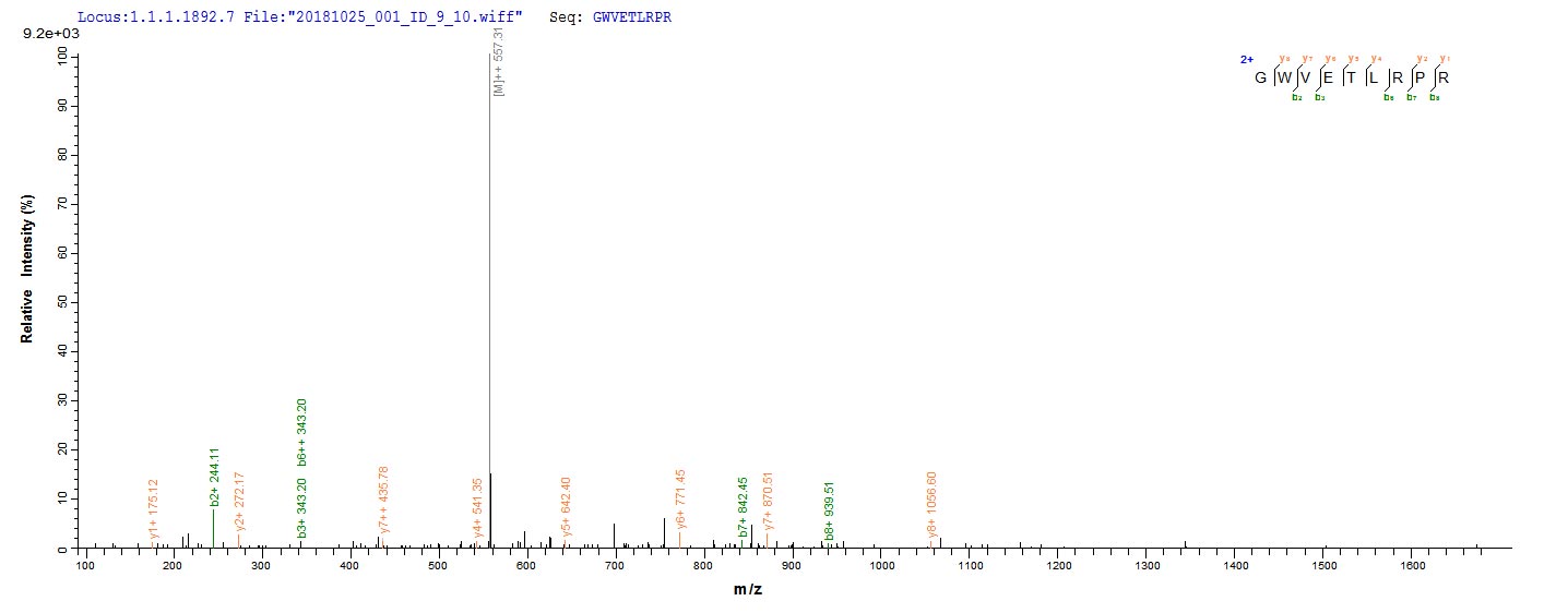 Based on the SEQUEST from database of E.coli host and target protein, the LC-MS/MS Analysis result of CSB-EP026136HU could indicate that this peptide derived from E.coli-expressed Homo sapiens (Human) WNT3A.