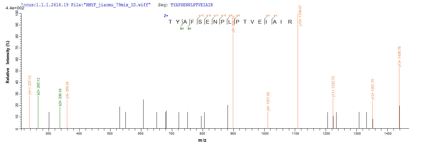 Based on the SEQUEST from database of Yeast host and target protein, the LC-MS/MS Analysis result of CSB-YP623654HU could indicate that this peptide derived from Yeast-expressed Homo sapiens (Human) SMARCB1.