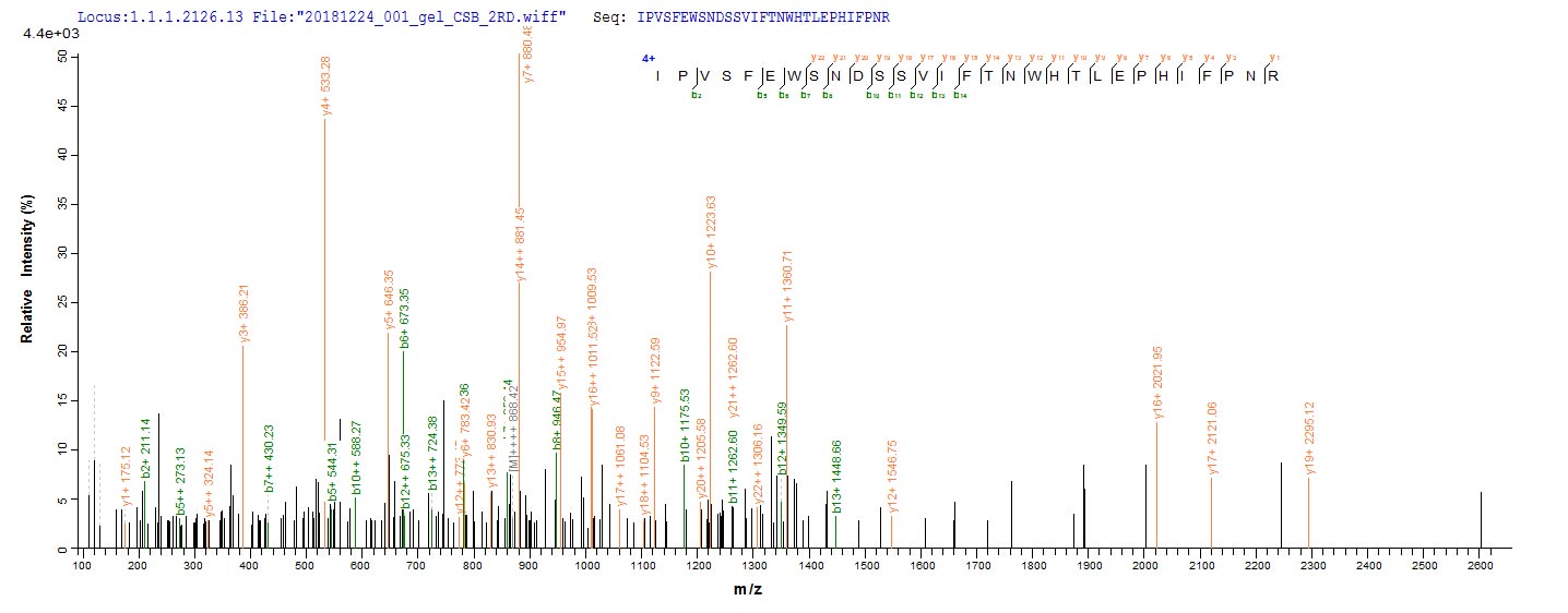 Based on the SEQUEST from database of E.coli host and target protein, the LC-MS/MS Analysis result of CSB-EP623780HU could indicate that this peptide derived from E.coli-expressed Homo sapiens (Human) PLA2R1.