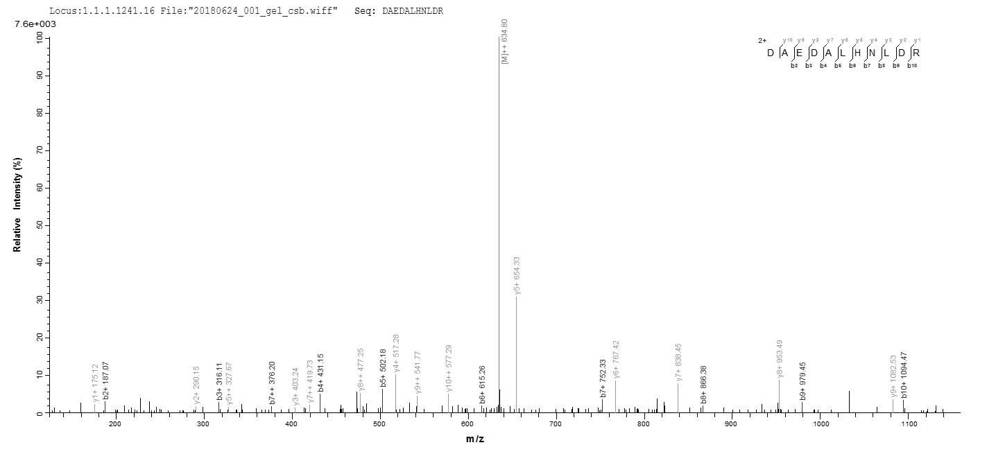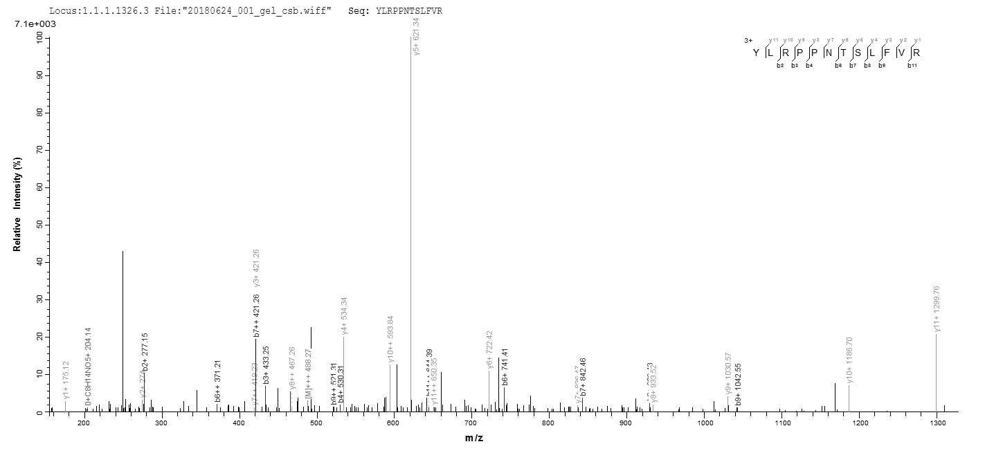 Based on the SEQUEST from database of E.coli host and target protein, the LC-MS/MS Analysis result of CSB-EP525638HU could indicate that this peptide derived from E.coli-expressed Homo sapiens (Human) SRSF10.