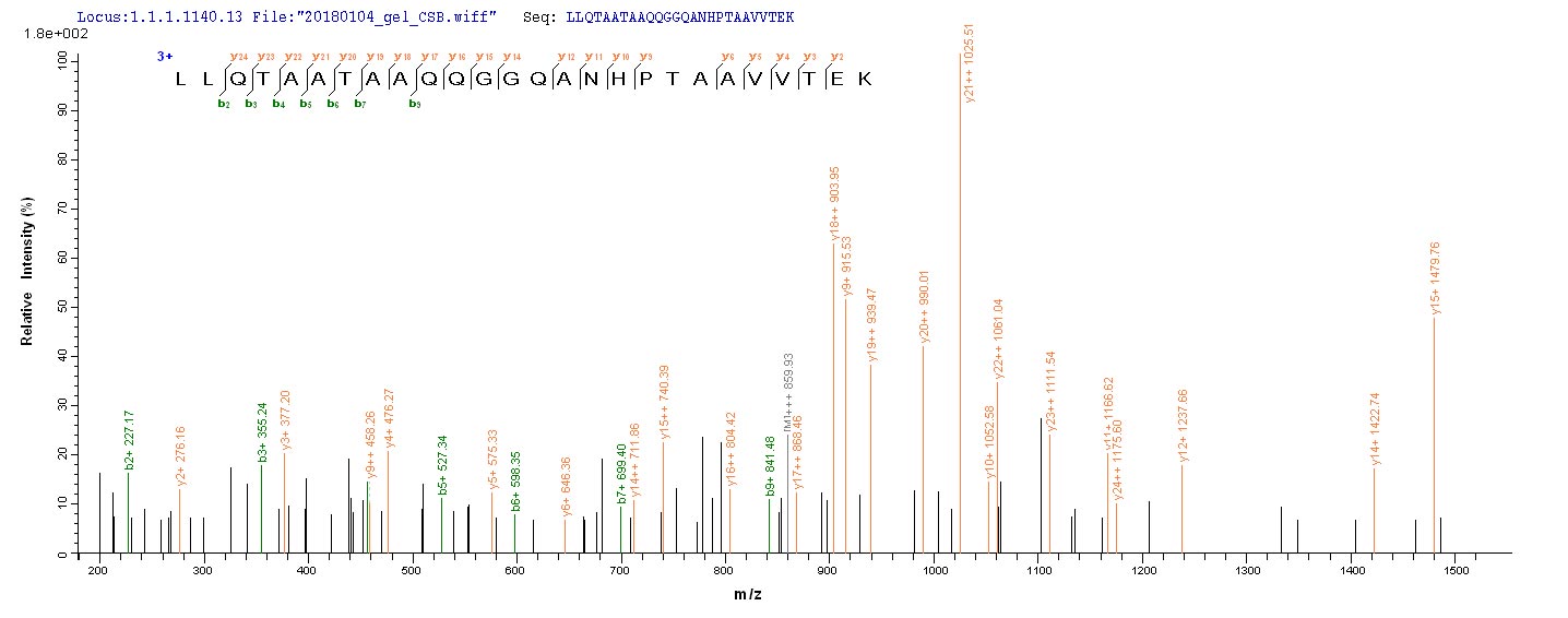 Based on the SEQUEST from database of E.coli host and target protein, the LC-MS/MS Analysis result of CSB-EP022812HU could indicate that this peptide derived from E.coli-expressed Homo sapiens (Human) STAT3.