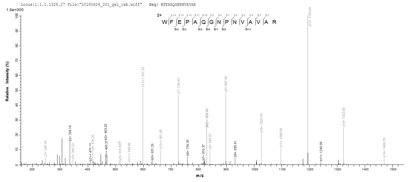 Based on the SEQUEST from database of E.coli host and target protein, the LC-MS/MS Analysis result of CSB-EP008789HU could indicate that this peptide derived from E.coli-expressed Homo sapiens (Human) IZUMO1R.
