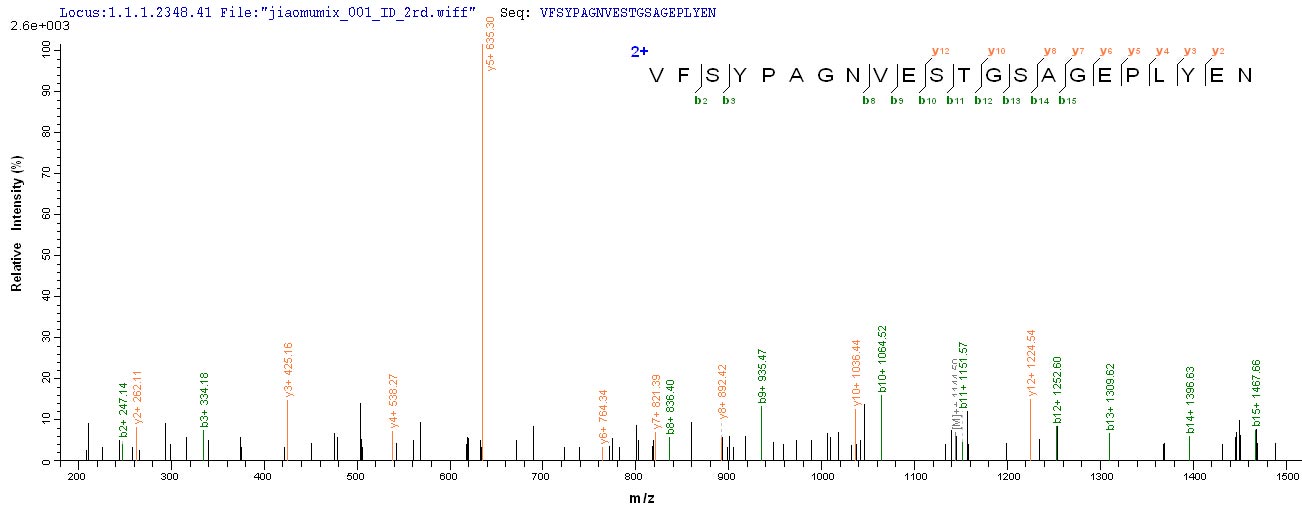 Based on the SEQUEST from database of E.coli host and target protein, the LC-MS/MS Analysis result of CSB-EP007928HU could indicate that this peptide derived from E.coli-expressed Homo sapiens (Human) F3.