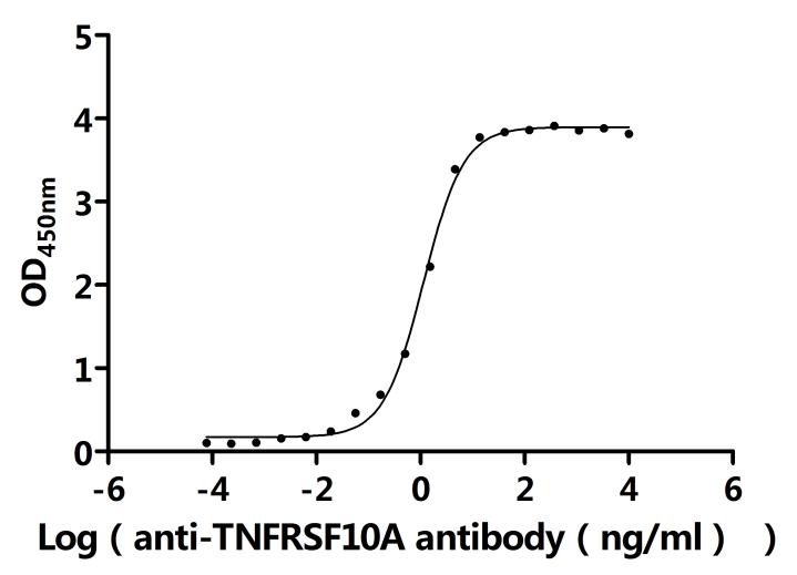Measured by its binding ability in a functional ELISA.Immobilized Human TNFRSF10A at 2 μg/ml can bind anti-TNFRSF10A recombinant antibody(CSB-RA023964MA1HU).The EC50 is 1.038-1.260 ng/mL. Biological Activity Assay -