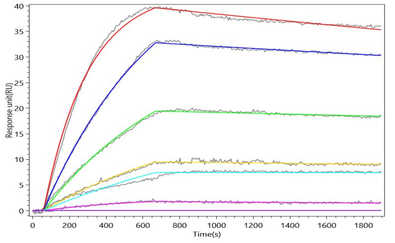 ②TNFRSF10A Recombinant Monoclonal Antibody(CSB-RA023964MA1HU) captured on Protein A Chip can bind Human TNFRSF10A with an affinity constant of 0.851 nM as detected by MetaSPR Assay (WeSPRTM 200). -