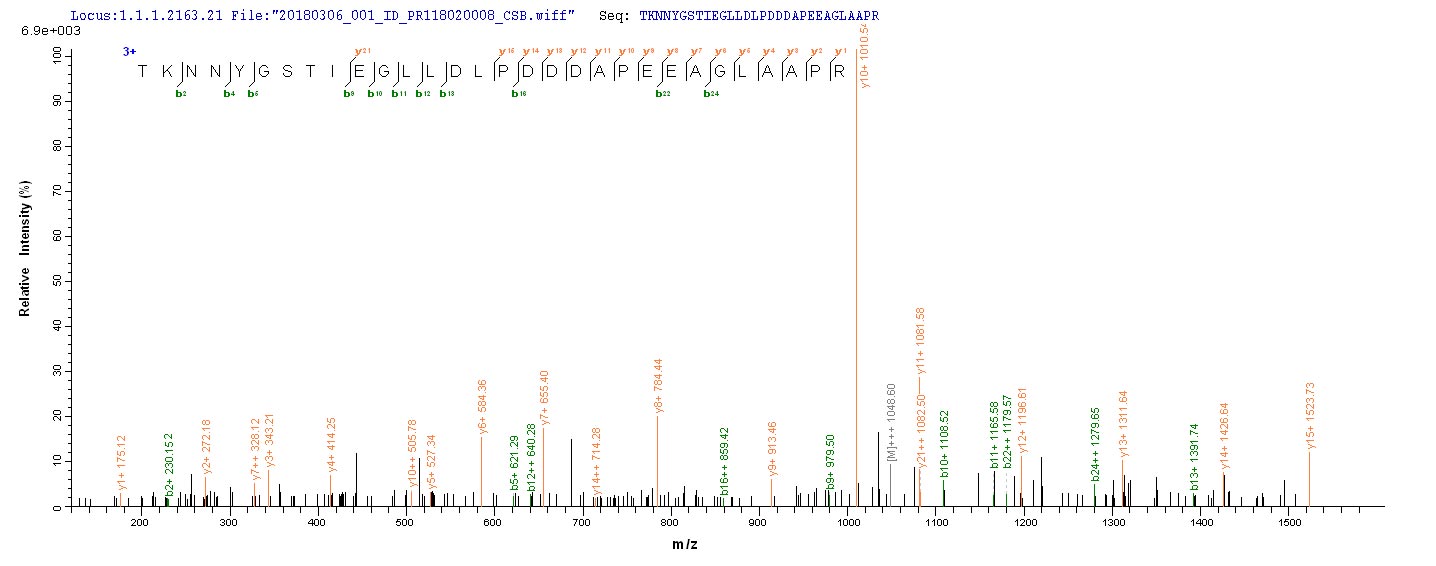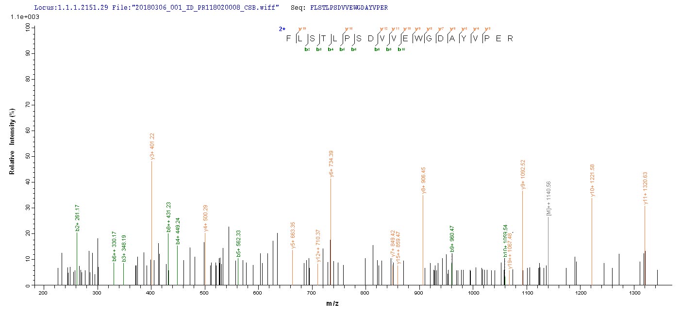 • Based on the SEQUEST from database of E.coli host and target protein, the LC-MS/MS Analysis result of CSB-EP356268HWZ could indicate that this peptide derived from E.coli-expressed Human herpesvirus 1 (strain F) (HHV-1) (Human herpes simplex virus 1) UL48.