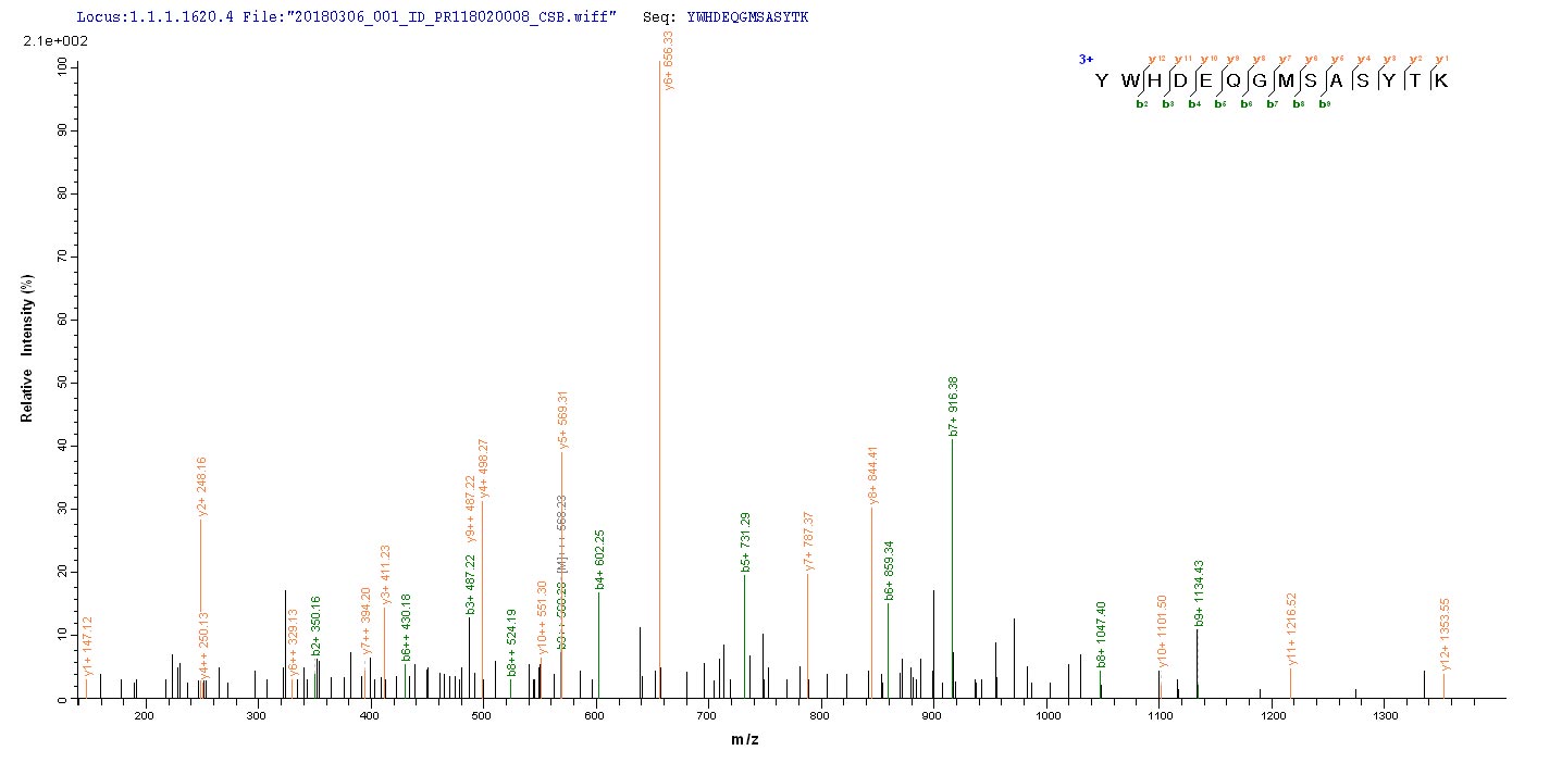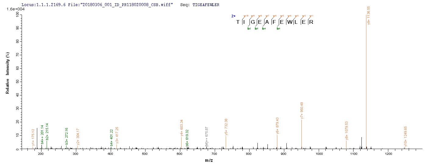 Based on the SEQUEST from database of E.coli host and target protein, the LC-MS/MS Analysis result of CSB-EP325553HLU could indicate that this peptide derived from E.coli-expressed Homo sapiens (Human) vpx.