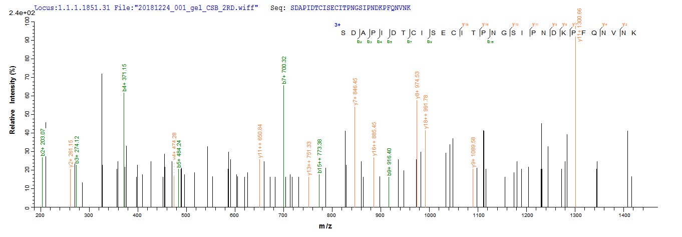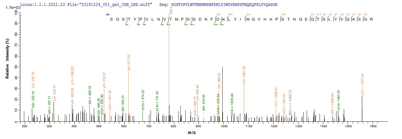 Based on the SEQUEST from database of E.coli host and target protein, the LC-MS/MS Analysis result of CSB-EP356317IDG could indicate that this peptide derived from E.coli-expressed Influenza A virus (strain A/England/878/1969 H3N2) HA.