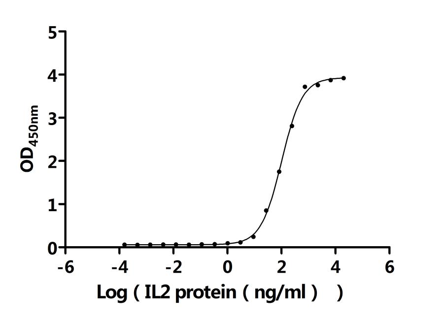 Measured by its binding ability in a functional ELISA. Immobilized Macaca fascicularis IL2RA at 2 μg/ml can bind Human IL2 (CSB-MP011629HU). The EC50 is 0.8151-1.087 ng/mL. Biological Activity Assay -