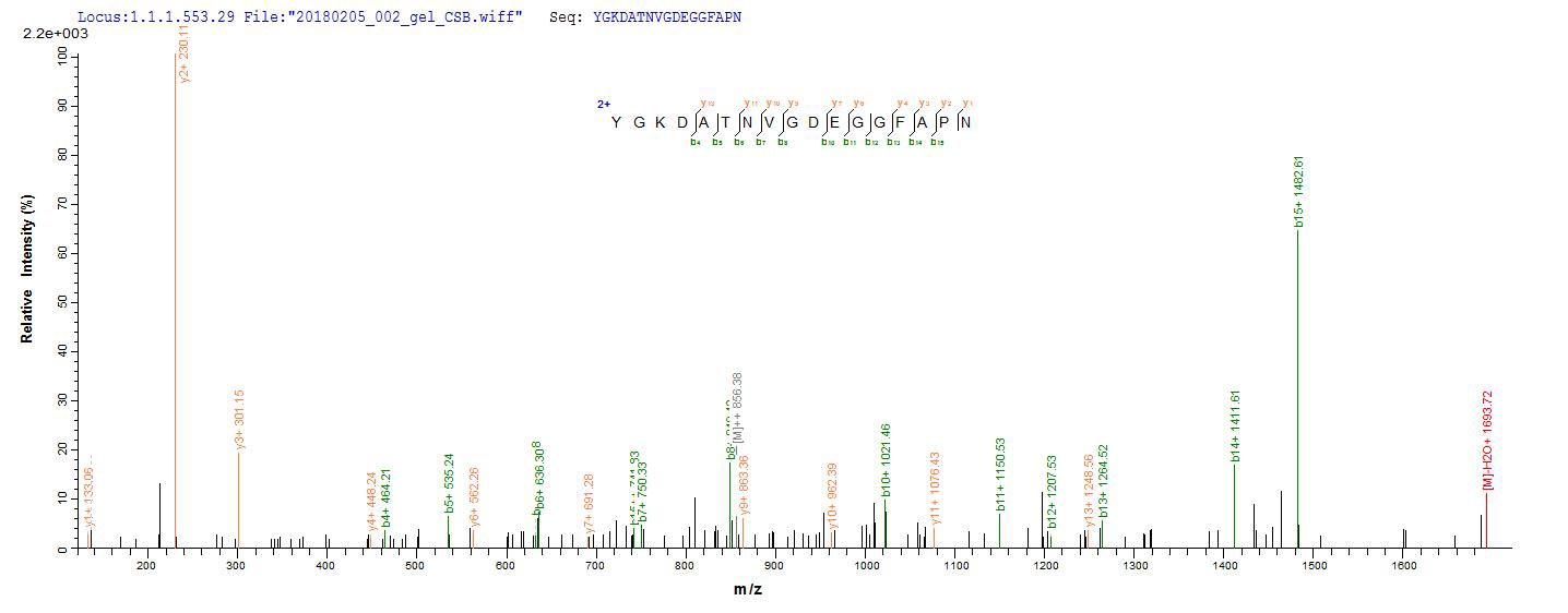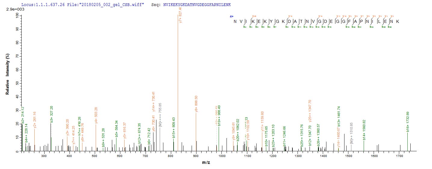 • Based on the SEQUEST from database of E.coli host and target protein, the LC-MS/MS Analysis result of CSB-EP007670MOb0 could indicate that this peptide derived from E.coli-expressed Mus musculus (Mouse) Eno1.