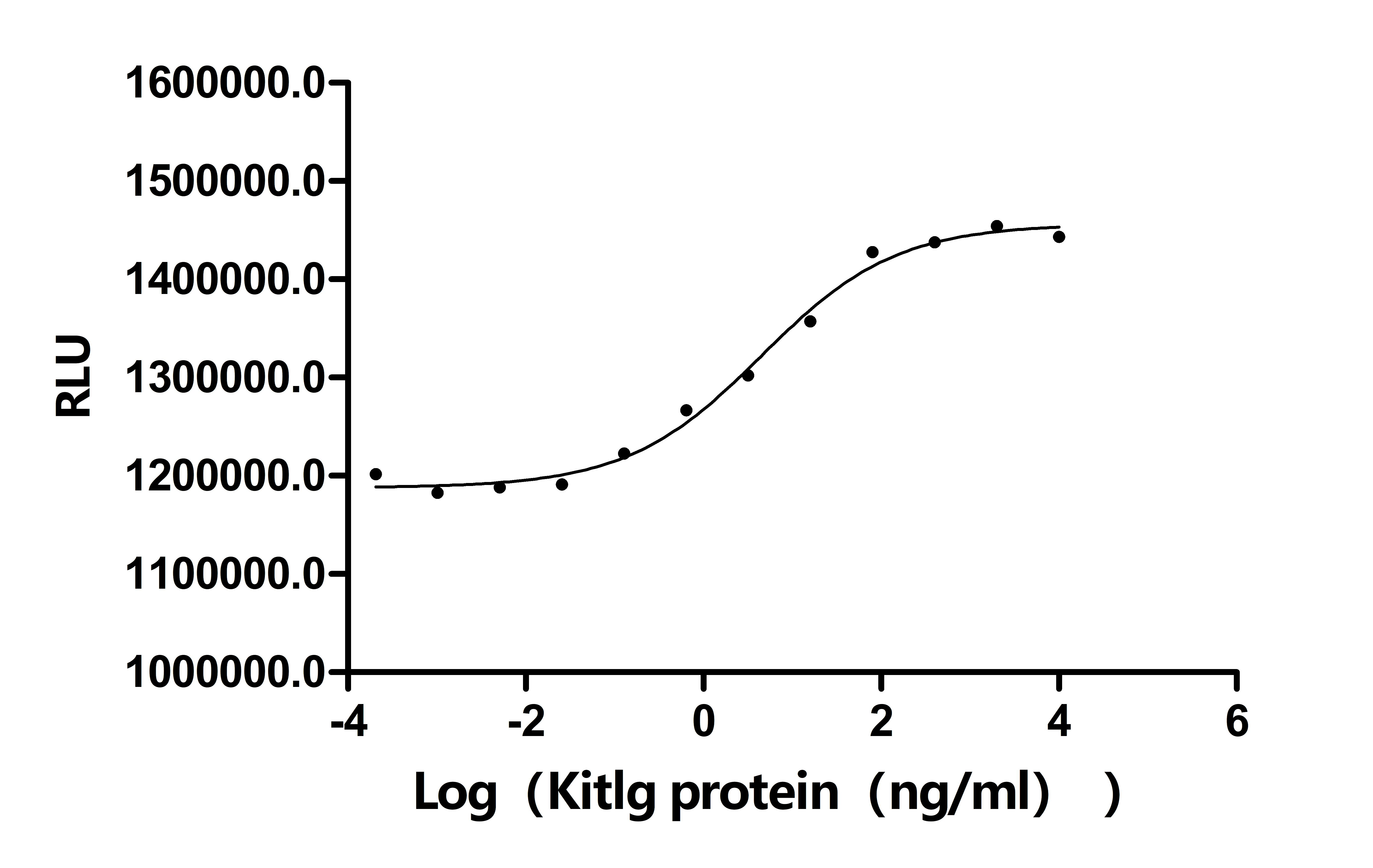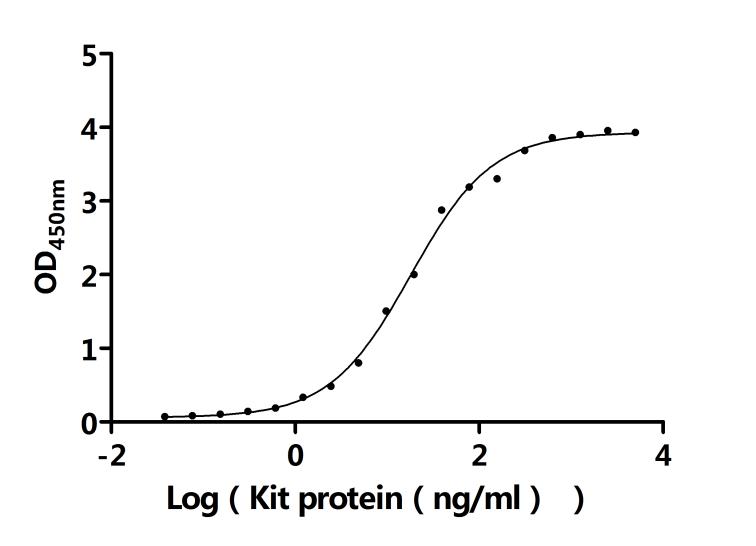 Measured by its binding ability in a functional ELISA.Immobilized Mouse Kitlg at 2 μg/ml can bind Mouse Kit(CSB-MP012375MO). The EC50 is 15.57-20.95 ng/mL.