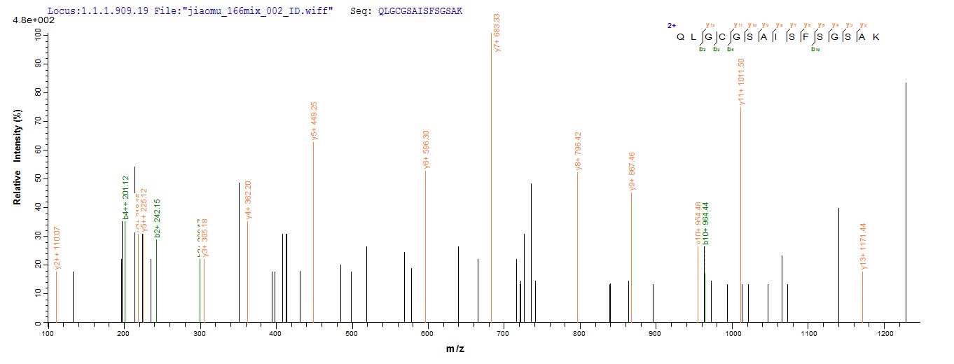 • Based on the SEQUEST from database of Yeast host and target protein, the LC-MS/MS Analysis result of CSB-YP650452MO could indicate that this peptide derived from Yeast-expressed Mus musculus (Mouse) Cd163.
