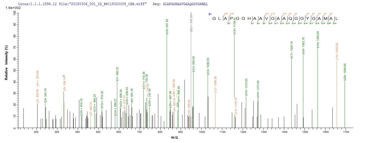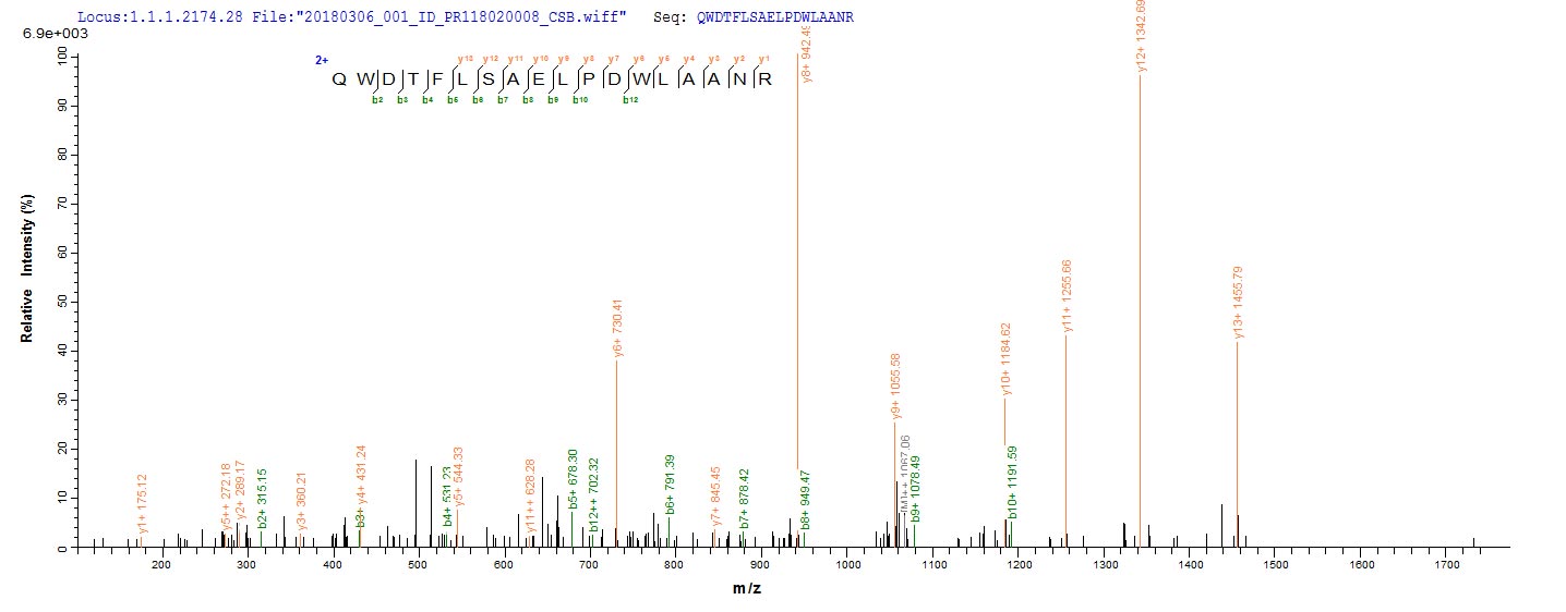 Based on the SEQUEST from database of E.coli host and target protein, the LC-MS/MS Analysis result of CSB-EP363615MVZ could indicate that this peptide derived from E.coli-expressed Mycobacterium tuberculosis mpt51.