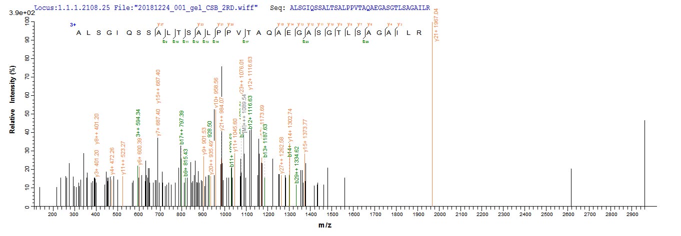 Based on the SEQUEST from database of E.coli host and target protein, the LC-MS/MS Analysis result of CSB-EP803414FGP(A4) could indicate that this peptide derived from E.coli-expressed Pseudomonas syringae pv. tomato (strain ATCC BAA-871 / DC3000) hopM1.