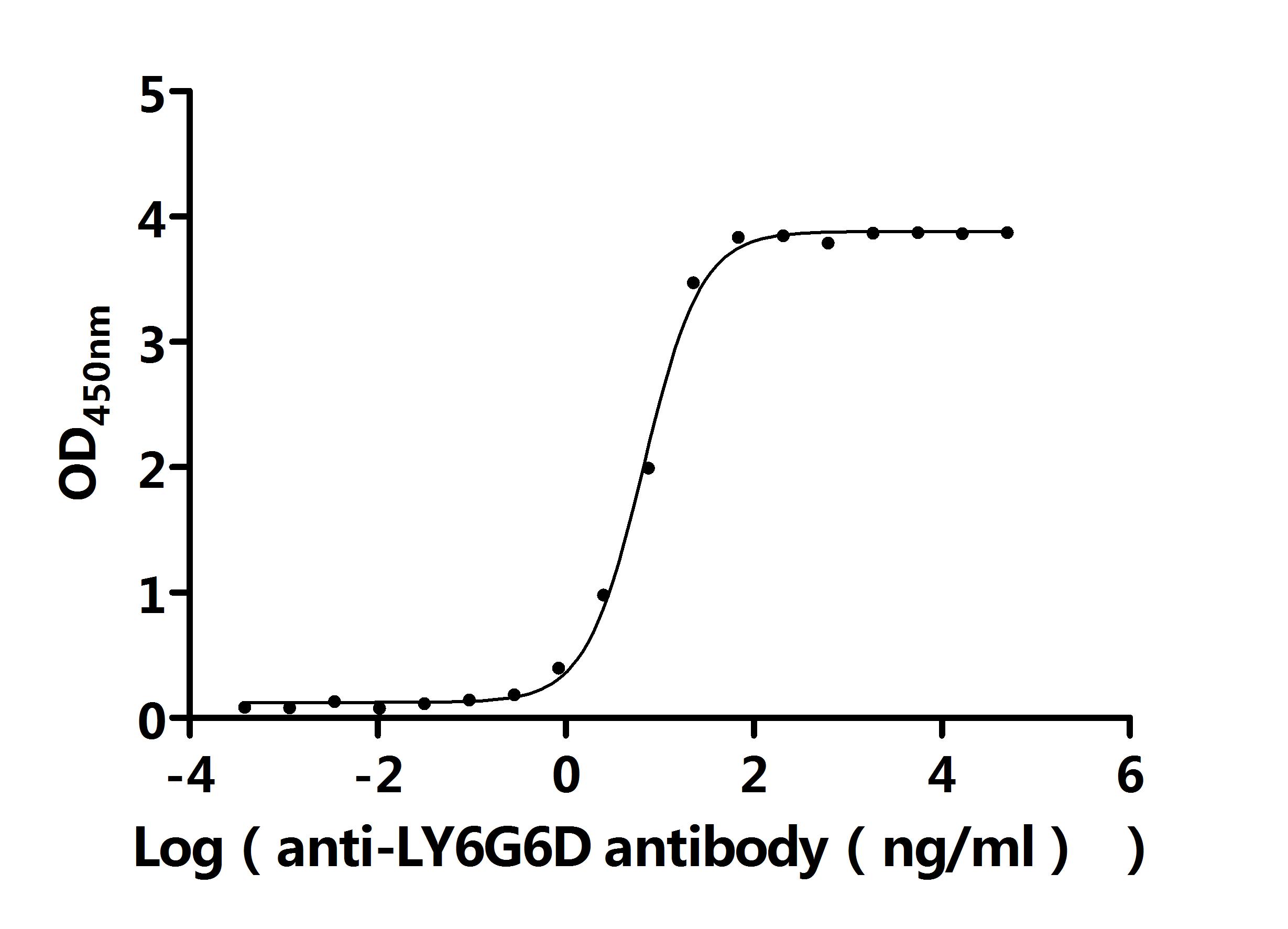 Measured by its binding ability in a functional ELISA. Immobilized Rat Ly6g6d at 2 μg/ml can bind Anti-Ly6g6d recombinant antibody (CSB-RA013246MA4HU). The EC50 is 6.238-7.258 ng/mL. Biological Activity Assay -