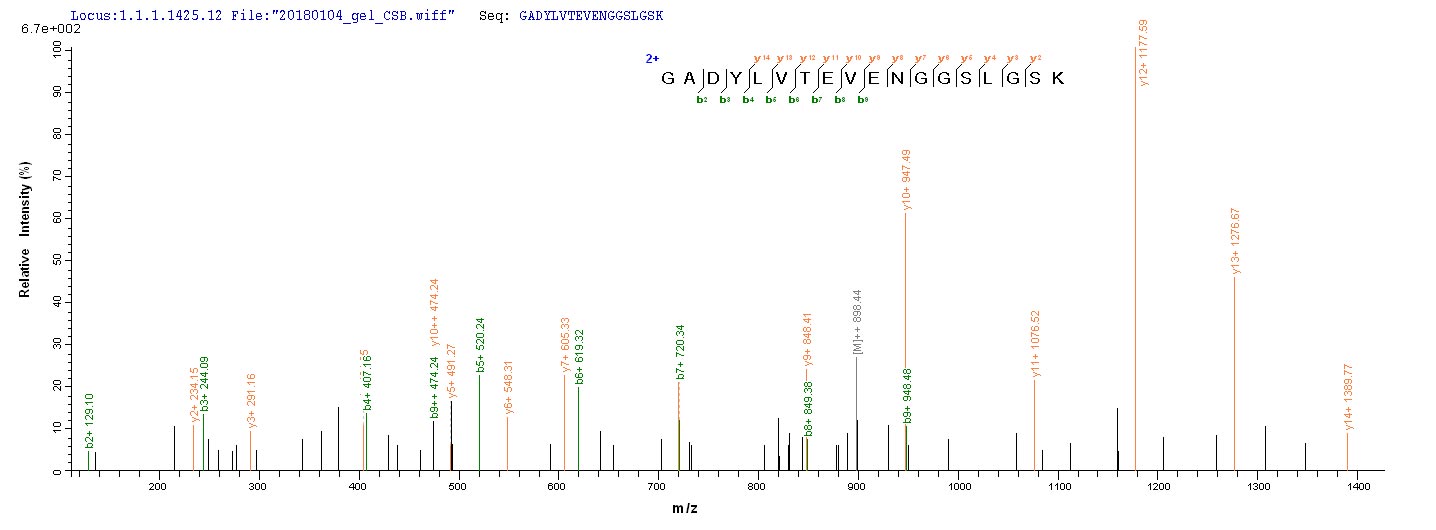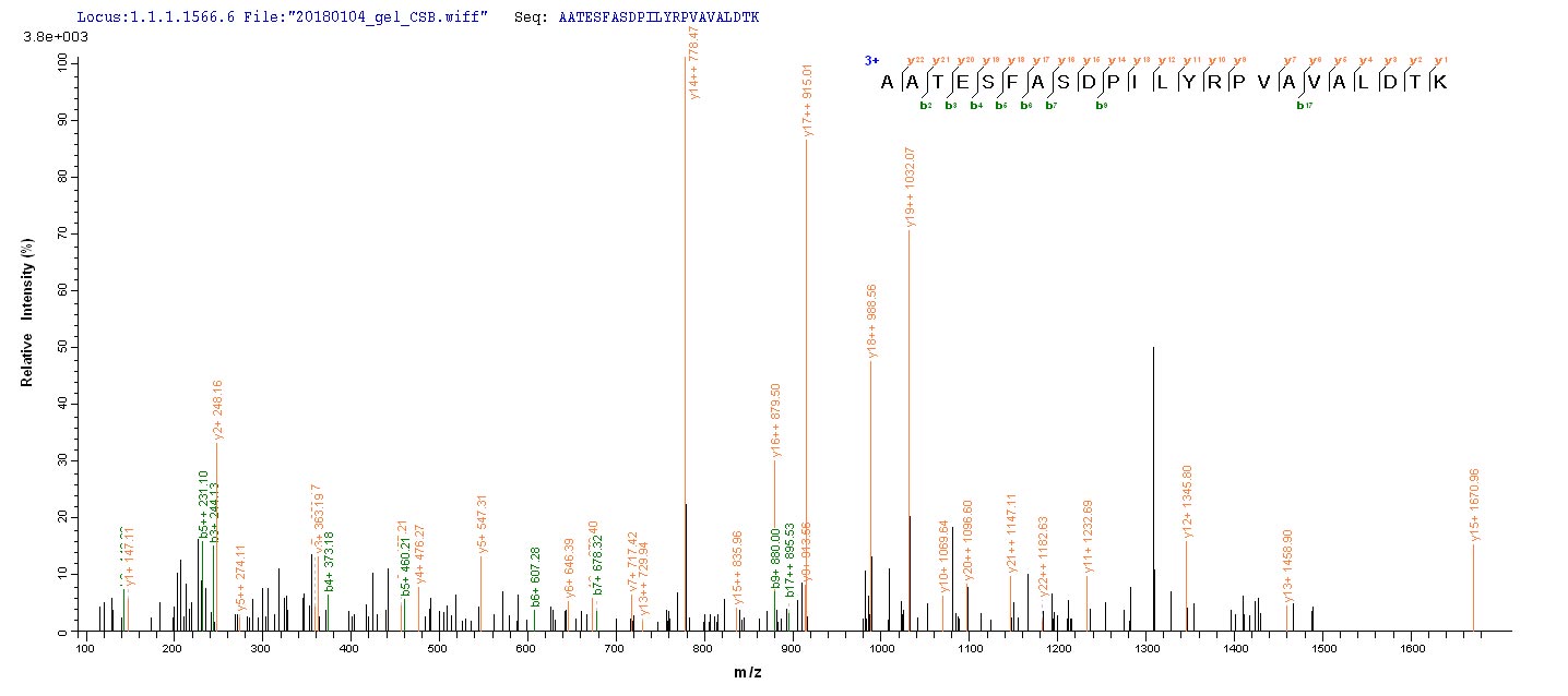 • Based on the SEQUEST from database of E.coli host and target protein, the LC-MS/MS Analysis result of CSB-EP018072RA could indicate that this peptide derived from E.coli-expressed Rattus norvegicus (Rat) Pkm.