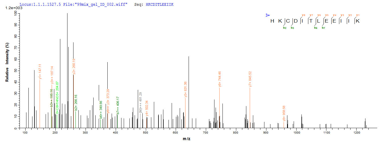 Based on the SEQUEST from database of E.coli host and target protein, the LC-MS/MS Analysis result of CSB-EP011659SH could indicate that this peptide derived from E.coli-expressed Ovis aries (Sheep) IL4.