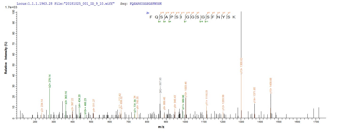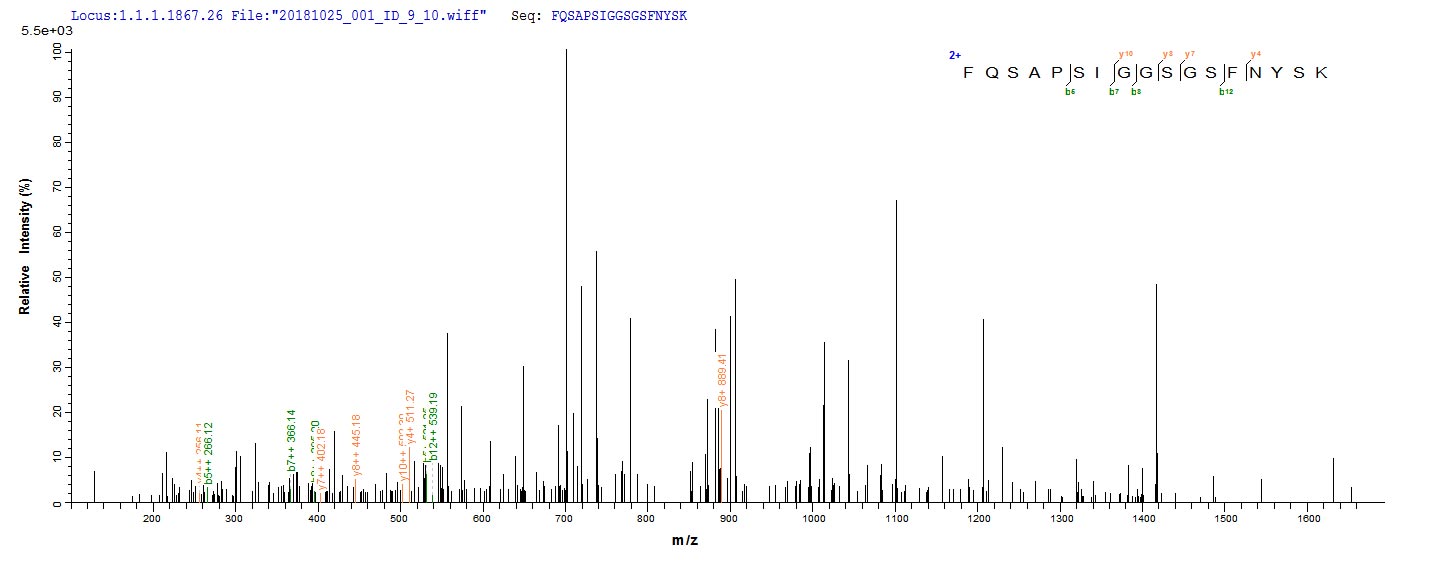 • Based on the SEQUEST from database of E.coli host and target protein, the LC-MS/MS Analysis result of CSB-EP357861SUL could indicate that this peptide derived from E.coli-expressed Staphylococcus aureus (strain MW2) hlgA.