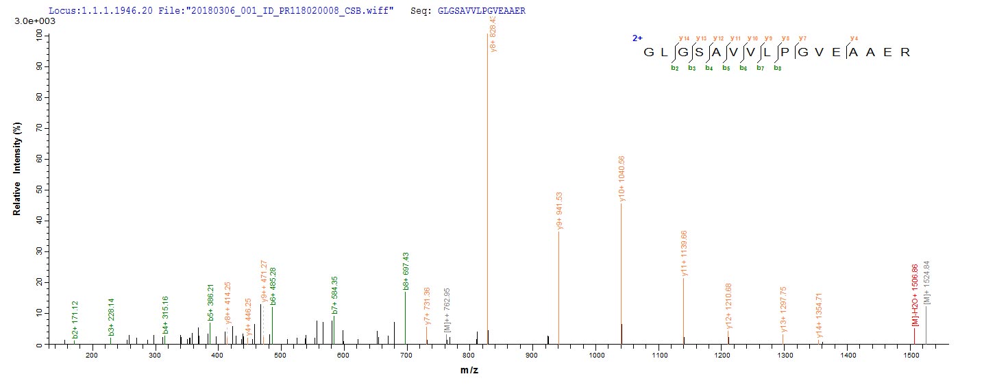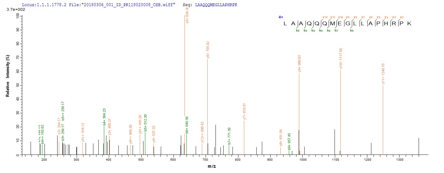 Based on the SEQUEST from database of E.coli host and target protein, the LC-MS/MS Analysis result of CSB-EP319512SNI could indicate that this peptide derived from E.coli-expressed Streptomyces alboniger pac.