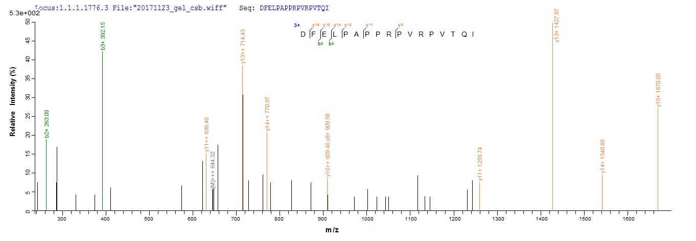• Based on the SEQUEST from database of Yeast host and target protein, the LC-MS/MS Analysis result of CSB-YP701139FOQ could indicate that this peptide derived from Yeast-expressed Streptomyces viridochromogenes (strain DSM 40736 / JCM 4977 / BCRC 1201 / Tue 494) pat.