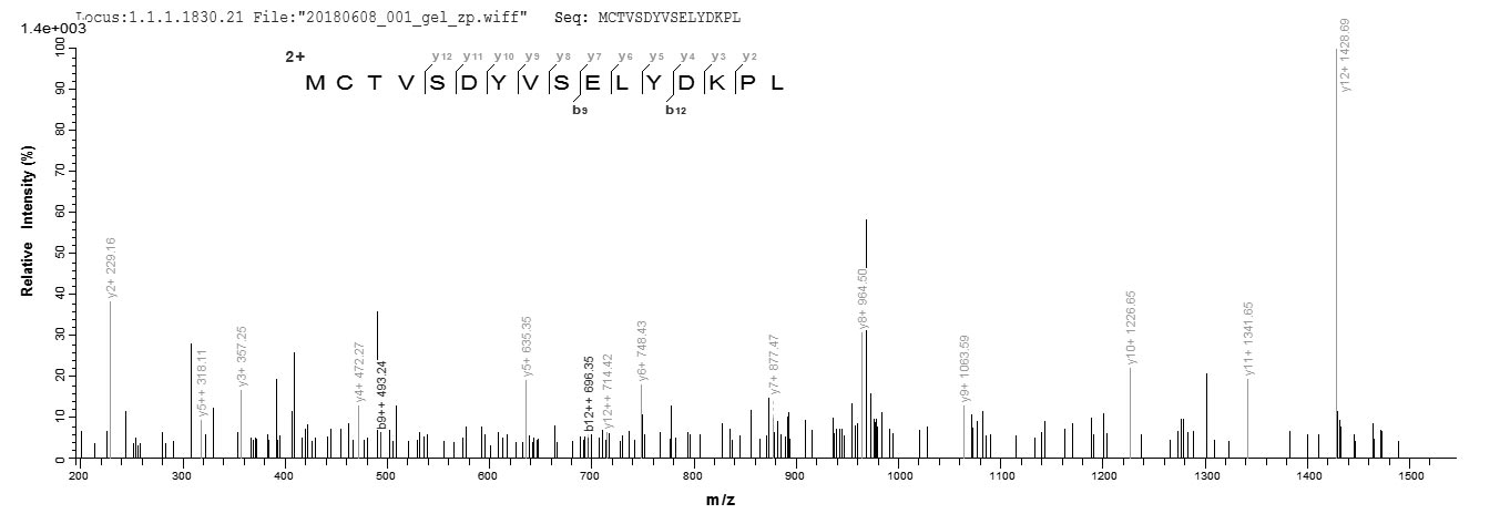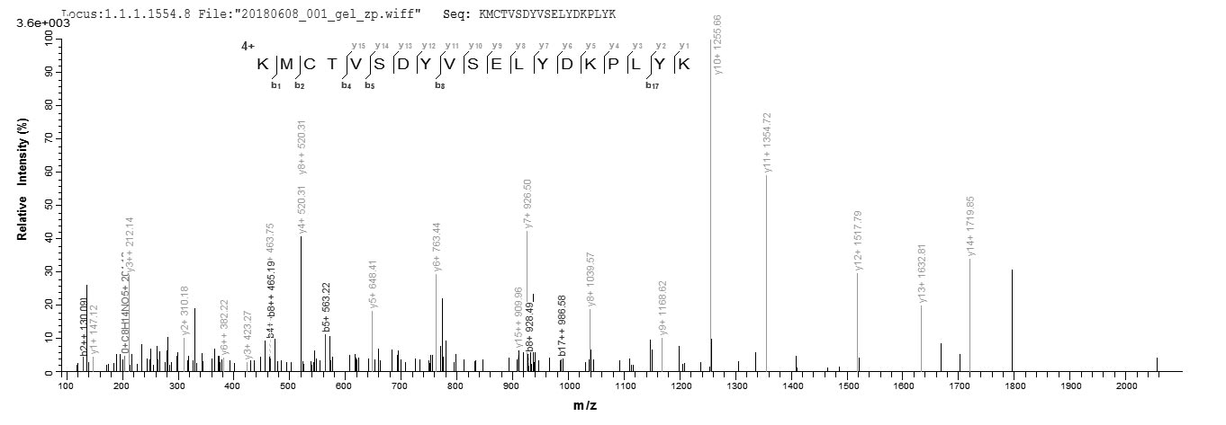 • Based on the SEQUEST from database of Baculovirus host and target protein, the LC-MS/MS Analysis result of CSB-BP335028VAF could indicate that this peptide derived from Baculovirus-expressed Vaccinia virus (strain LC16m8) (VACV) PS/HR.