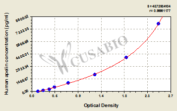 通過線性范圍來計算出實際的檢測樣本值,定量試劑盒標準曲線的相關系數R大于0.99。以CSB-E07270h(人脂聯素(ADP)ELISA Kit)為例的標準曲線。