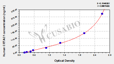 通過線性范圍來計算出實際的檢測樣本值,定量試劑盒標準曲線的相關系數R大于0.99。以CSB-E07270h(人脂聯素(ADP)ELISA Kit)為例的標準曲線。