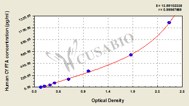 通過線性范圍來計算出實際的檢測樣本值,定量試劑盒標準曲線的相關系數R大于0.99。以CSB-E07270h(人脂聯素(ADP)ELISA Kit)為例的標準曲線。