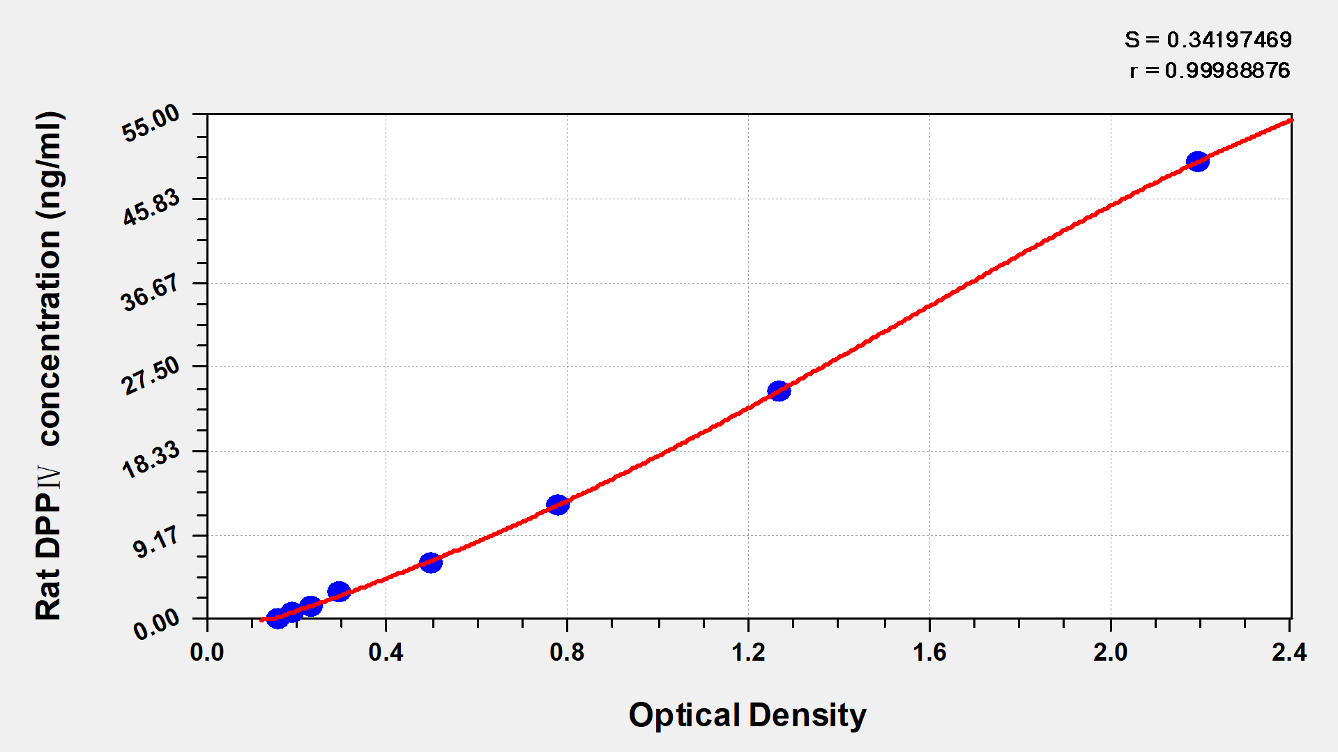 通過線性范圍來計(jì)算出實(shí)際的檢測(cè)樣本值,定量試劑盒標(biāo)準(zhǔn)曲線的相關(guān)系數(shù)R大于0.99。以CSB-E07270h(人脂聯(lián)素(ADP)ELISA Kit)為例的標(biāo)準(zhǔn)曲線。