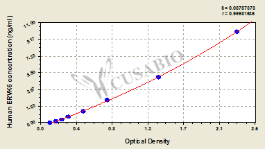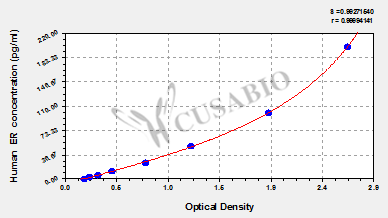 通過線性范圍來計算出實際的檢測樣本值,定量試劑盒標準曲線的相關系數R大于0.99。以CSB-E07270h(人脂聯素(ADP)ELISA Kit)為例的標準曲線。