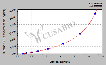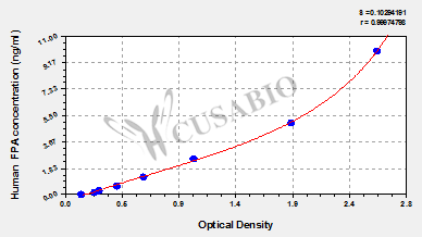 通過(guò)線性范圍來(lái)計(jì)算出實(shí)際的檢測(cè)樣本值,定量試劑盒標(biāo)準(zhǔn)曲線的相關(guān)系數(shù)R大于0.99。以CSB-E07270h(人脂聯(lián)素(ADP)ELISA Kit)為例的標(biāo)準(zhǔn)曲線。