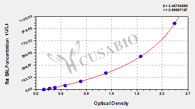 通過線性范圍來計算出實際的檢測樣本值,定量試劑盒標準曲線的相關系數R大于0.99。以CSB-E07270h(人脂聯素(ADP)ELISA Kit)為例的標準曲線。