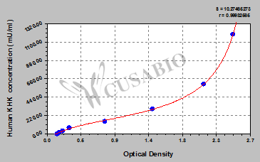 通過線性范圍來計(jì)算出實(shí)際的檢測(cè)樣本值,定量試劑盒標(biāo)準(zhǔn)曲線的相關(guān)系數(shù)R大于0.99。以CSB-E07270h(人脂聯(lián)素(ADP)ELISA Kit)為例的標(biāo)準(zhǔn)曲線。