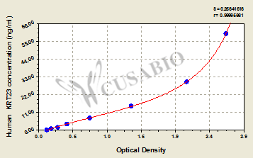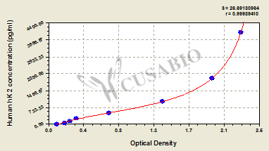 通過線性范圍來計算出實際的檢測樣本值,定量試劑盒標準曲線的相關(guān)系數(shù)R大于0.99。以CSB-E07270h(人脂聯(lián)素(ADP)ELISA Kit)為例的標準曲線。