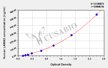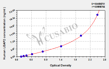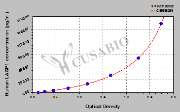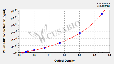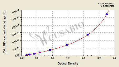 通過(guò)線(xiàn)性范圍來(lái)計(jì)算出實(shí)際的檢測(cè)樣本值,定量試劑盒標(biāo)準(zhǔn)曲線(xiàn)的相關(guān)系數(shù)R大于0.99。以CSB-E07270h(人脂聯(lián)素(ADP)ELISA Kit)為例的標(biāo)準(zhǔn)曲線(xiàn)。