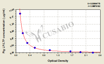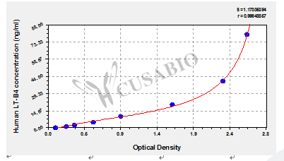 通過線性范圍來計算出實際的檢測樣本值,定量試劑盒標準曲線的相關(guān)系數(shù)R大于0.99。以CSB-E07270h(人脂聯(lián)素(ADP)ELISA Kit)為例的標準曲線。