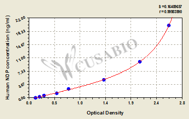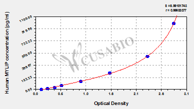 通過線性范圍來計算出實際的檢測樣本值,定量試劑盒標準曲線的相關系數R大于0.99。以CSB-E07270h(人脂聯素(ADP)ELISA Kit)為例的標準曲線。
