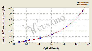 通過線性范圍來計算出實際的檢測樣本值,定量試劑盒標準曲線的相關系數R大于0.99。以CSB-E07270h(人脂聯素(ADP)ELISA Kit)為例的標準曲線。