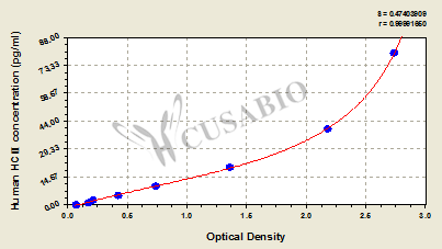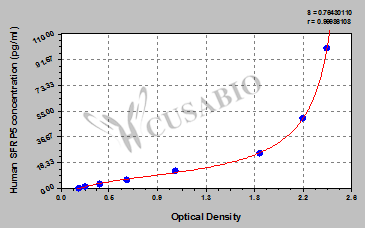 通過線性范圍來計算出實際的檢測樣本值,定量試劑盒標(biāo)準(zhǔn)曲線的相關(guān)系數(shù)R大于0.99。以CSB-E07270h(人脂聯(lián)素(ADP)ELISA Kit)為例的標(biāo)準(zhǔn)曲線。