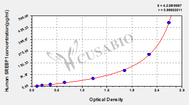 通過線性范圍來計算出實際的檢測樣本值,定量試劑盒標準曲線的相關系數R大于0.99。以CSB-E07270h(人脂聯素(ADP)ELISA Kit)為例的標準曲線。