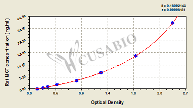 通過線性范圍來計算出實際的檢測樣本值,定量試劑盒標準曲線的相關系數R大于0.99。以CSB-E07270h(人脂聯素(ADP)ELISA Kit)為例的標準曲線。