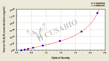 通過線性范圍來計算出實際的檢測樣本值,定量試劑盒標準曲線的相關系數R大于0.99。以CSB-E07270h(人脂聯素(ADP)ELISA Kit)為例的標準曲線。