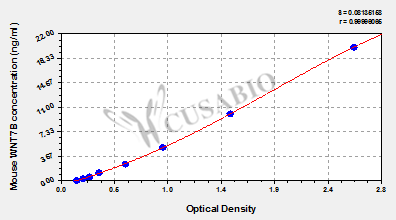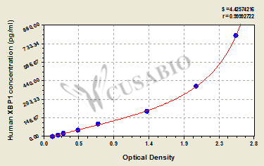 通過(guò)線性范圍來(lái)計(jì)算出實(shí)際的檢測(cè)樣本值,定量試劑盒標(biāo)準(zhǔn)曲線的相關(guān)系數(shù)R大于0.99。以CSB-E07270h(人脂聯(lián)素(ADP)ELISA Kit)為例的標(biāo)準(zhǔn)曲線。