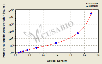 通過線性范圍來計算出實際的檢測樣本值,定量試劑盒標準曲線的相關系數R大于0.99。以CSB-E07270h(人脂聯素(ADP)ELISA Kit)為例的標準曲線。