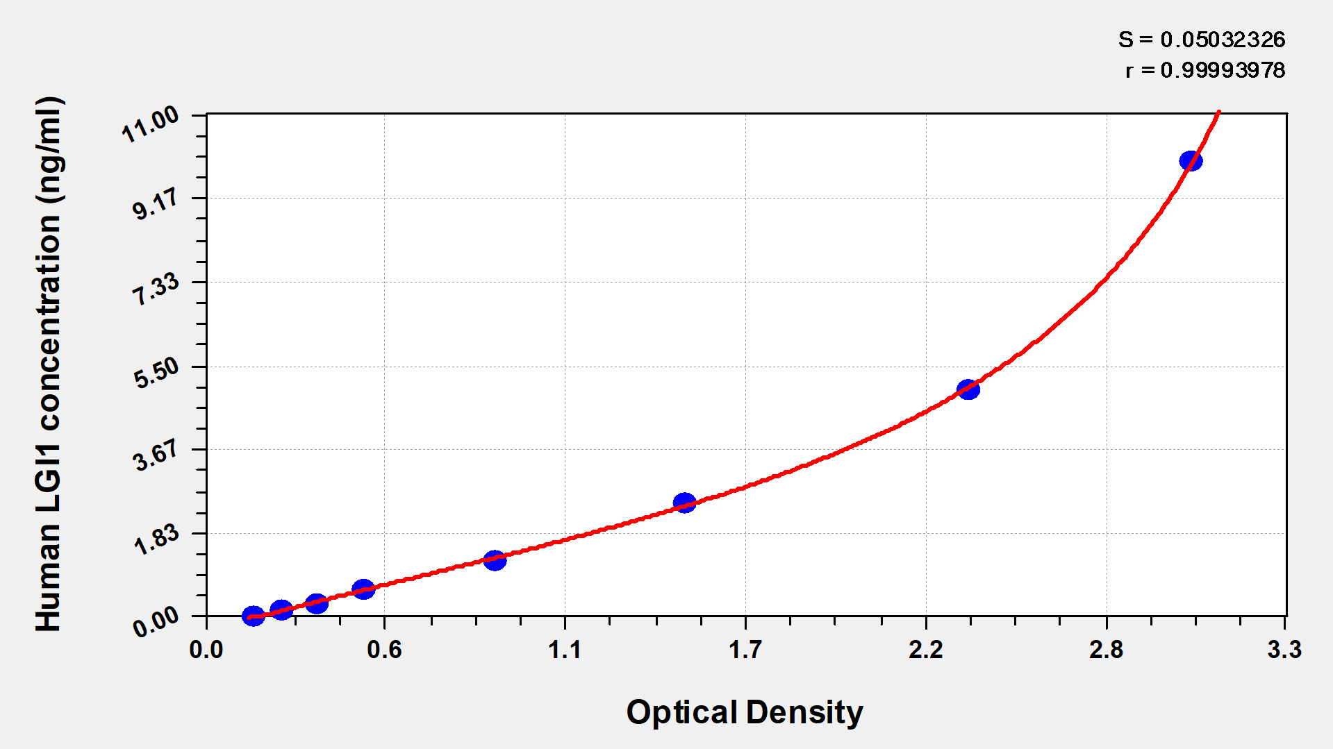 通過(guò)線性范圍來(lái)計(jì)算出實(shí)際的檢測(cè)樣本值,定量試劑盒標(biāo)準(zhǔn)曲線的相關(guān)系數(shù)R大于0.99。以CSB-E07270h(人脂聯(lián)素(ADP)ELISA Kit)為例的標(biāo)準(zhǔn)曲線。