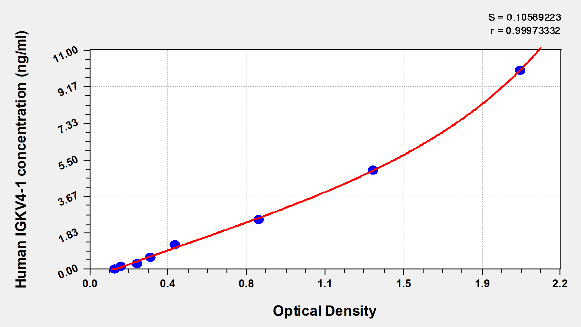 通過線性范圍來計算出實際的檢測樣本值,定量試劑盒標(biāo)準(zhǔn)曲線的相關(guān)系數(shù)R大于0.99。以CSB-E07270h(人脂聯(lián)素(ADP)ELISA Kit)為例的標(biāo)準(zhǔn)曲線。