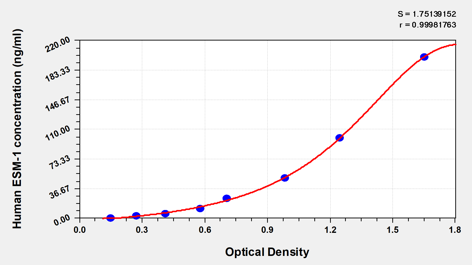 通過線性范圍來計算出實際的檢測樣本值,定量試劑盒標(biāo)準(zhǔn)曲線的相關(guān)系數(shù)R大于0.99。以CSB-E07270h(人脂聯(lián)素(ADP)ELISA Kit)為例的標(biāo)準(zhǔn)曲線。