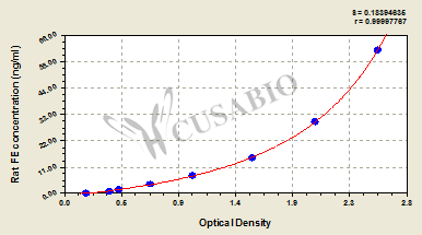 通過(guò)線性范圍來(lái)計(jì)算出實(shí)際的檢測(cè)樣本值,定量試劑盒標(biāo)準(zhǔn)曲線的相關(guān)系數(shù)R大于0.99。以CSB-E07270h(人脂聯(lián)素(ADP)ELISA Kit)為例的標(biāo)準(zhǔn)曲線。