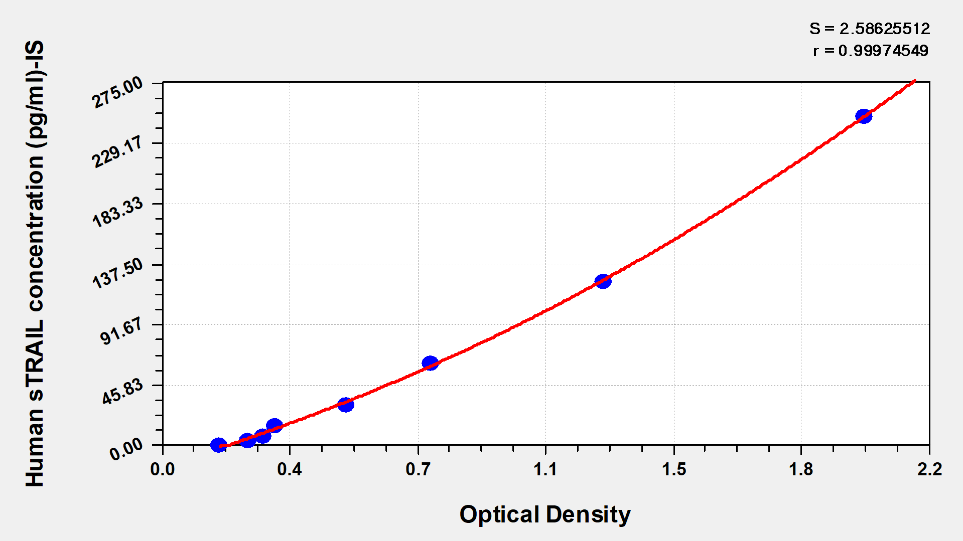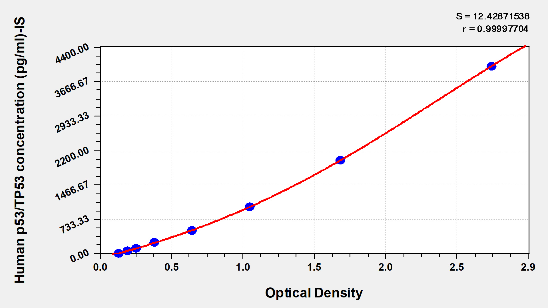 通過線性范圍來計算出實際的檢測樣本值,定量試劑盒標準曲線的相關系數R大于0.99。以CSB-E07270h(人脂聯素(ADP)ELISA Kit)為例的標準曲線。
